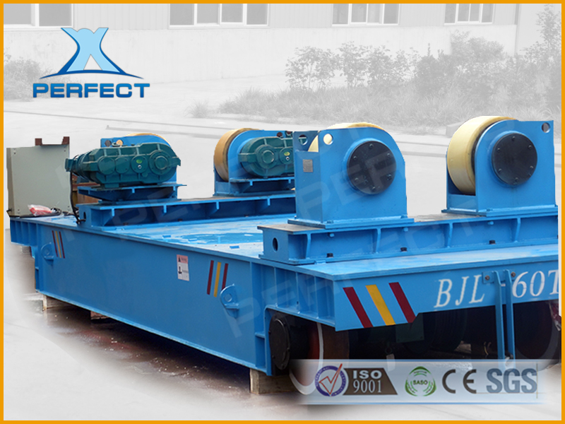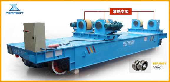 是一種特制的軌道運輸工具車,主要應用于焊接、探傷、生產線等工況,該車型分為兩種,一種在臺面上加裝特制的滾輪支架,用來調節所運載物料角度,以方便對接或切割。
