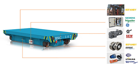 BXC:軌道式過跨電瓶車是一種以蓄電池作為電力來源的軌道平車,擺脫線纜的束縛,可采用遙控操作,使用時更加方便,適用于較長距離的軌道運輸系統。